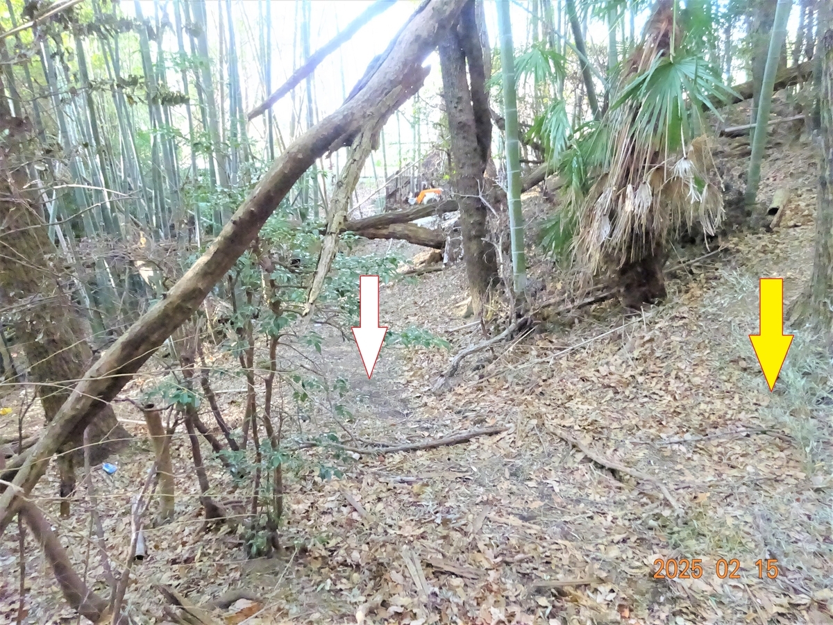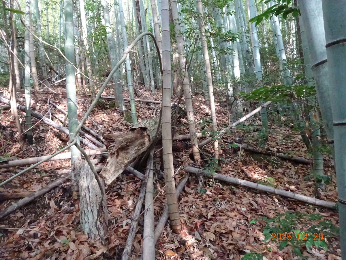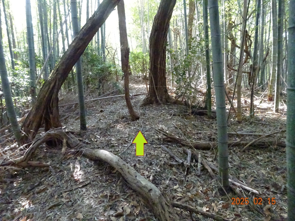 *写真は2025年2月。季節や経過年数により周辺の様子や目印が変わることが多いので注意下さい。特に竹は1年で20m程に成長するらしいので、竹林は要注意です。