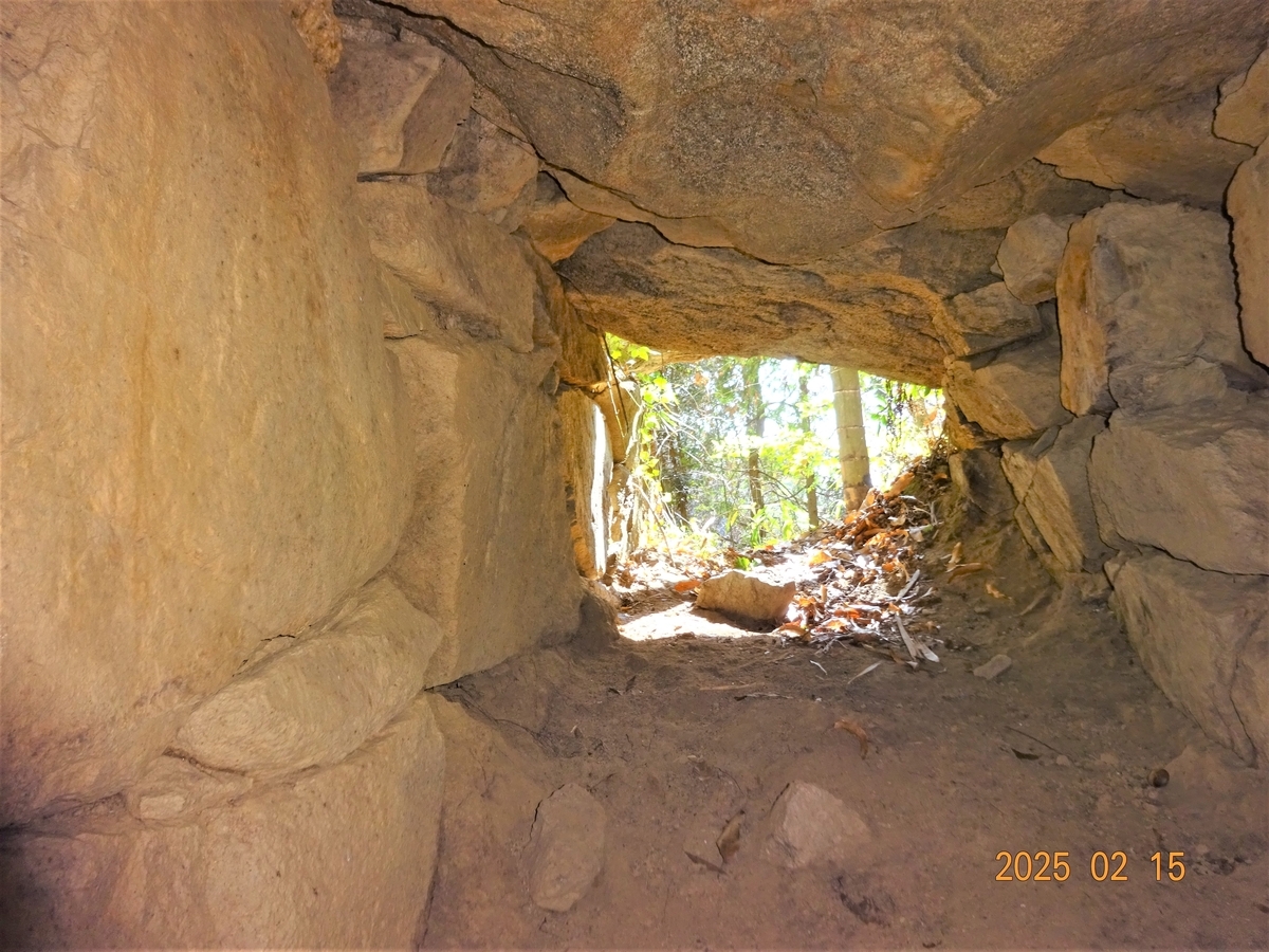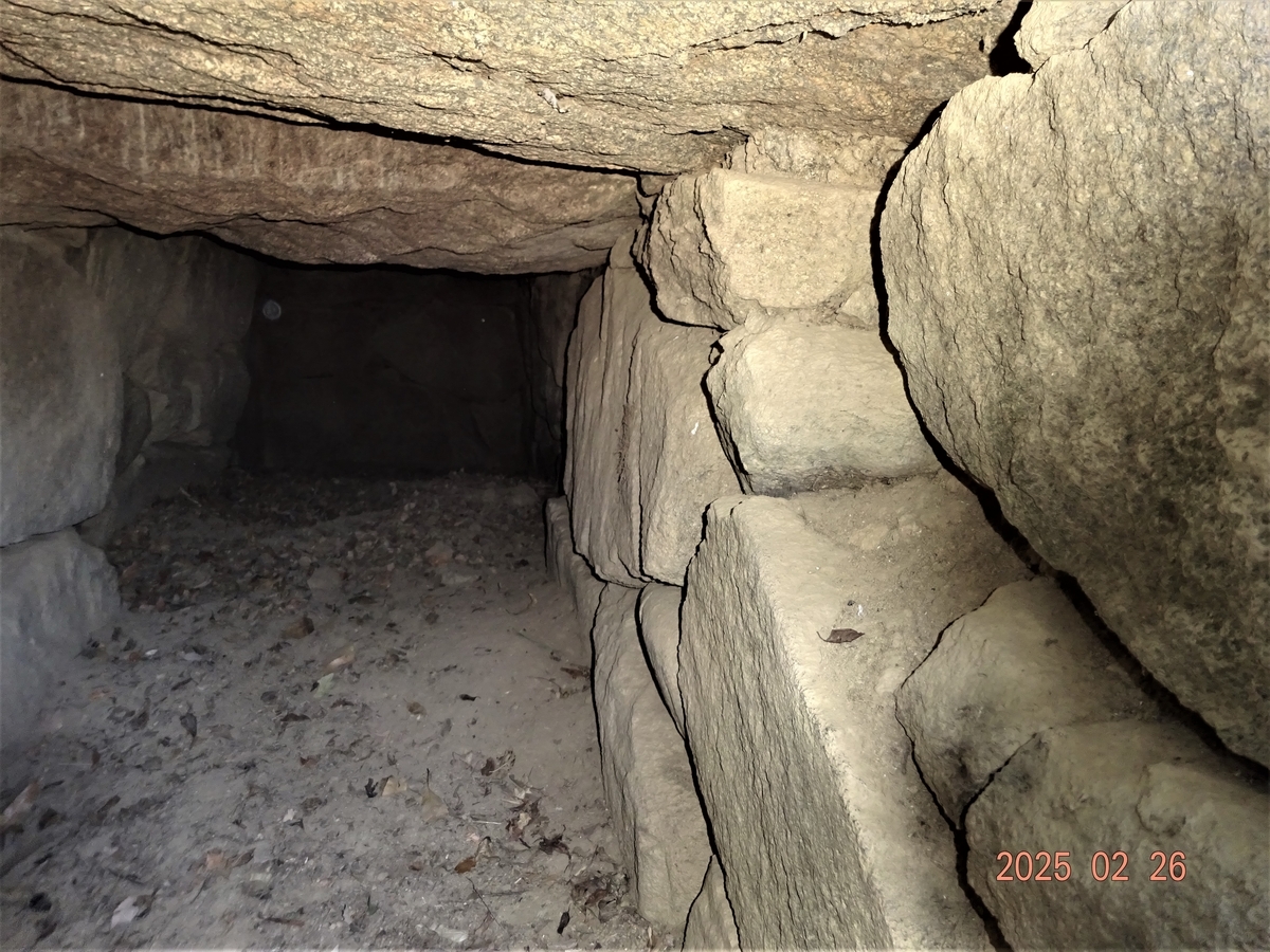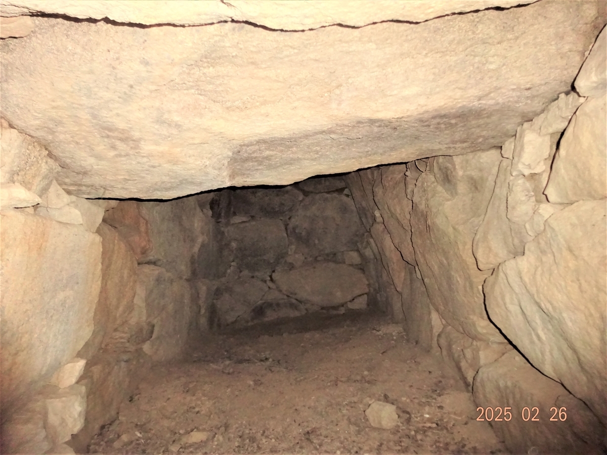 やや扁平な感じの石室が完存する、