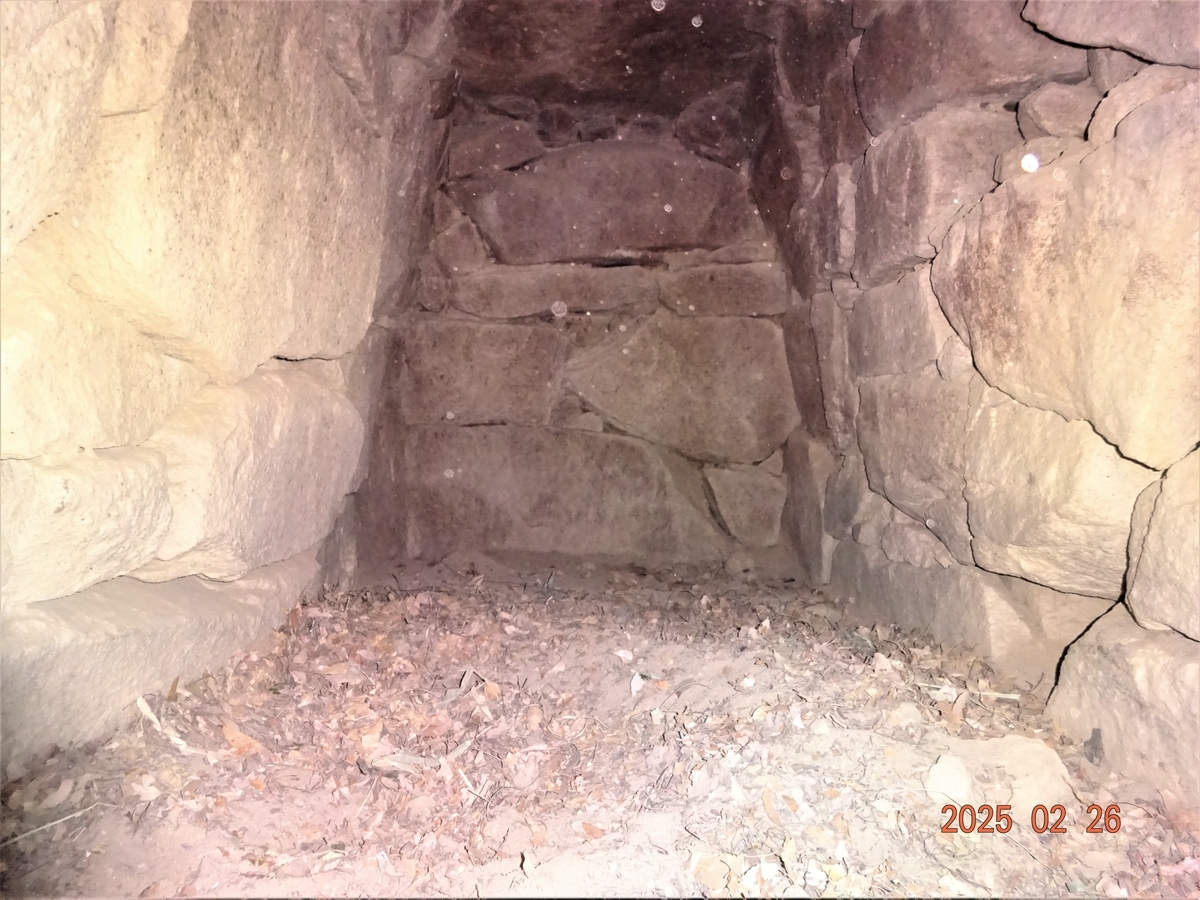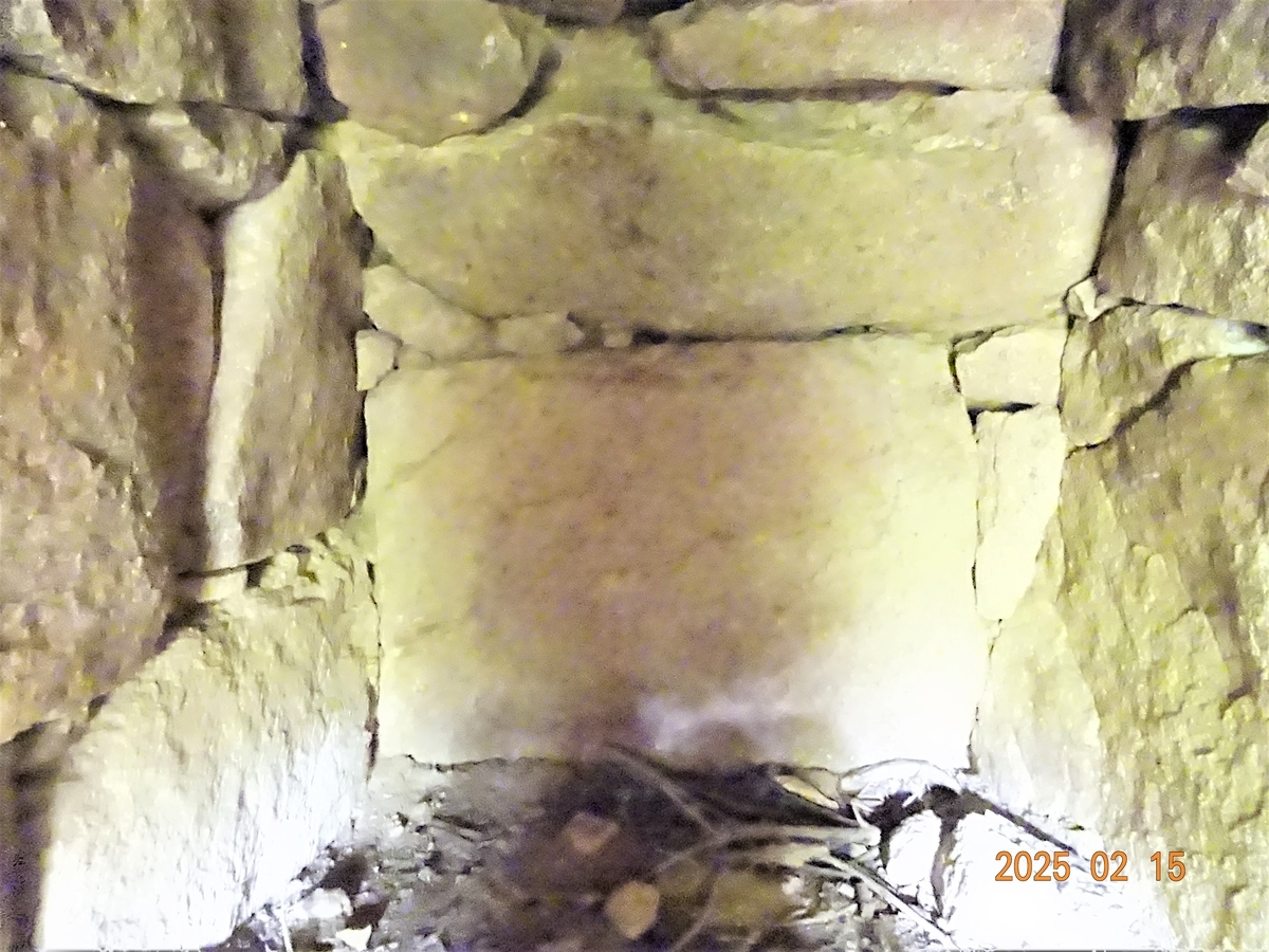 明確な両袖式 羨道部天井の傾きは裏込め土の流失か?